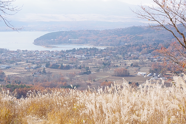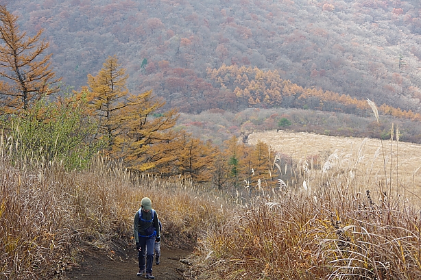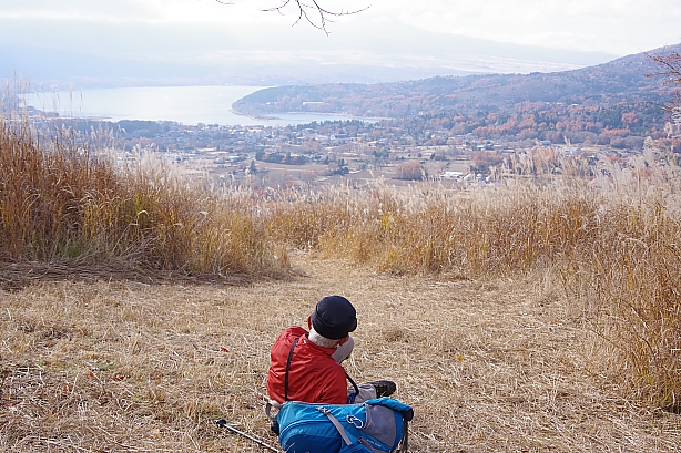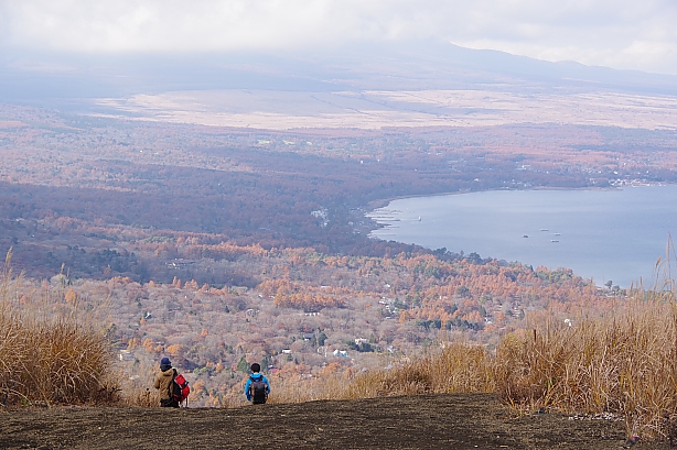 ▲此方の下山道は、ず〜っと富士山と山中湖を正面に眺めながら下れます。