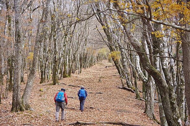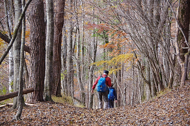 ▲晩秋の稜線を辿り、大洞山(1384m)、楢木山(1353m)