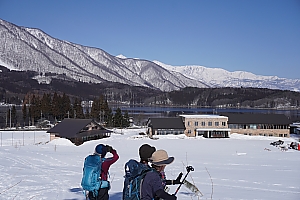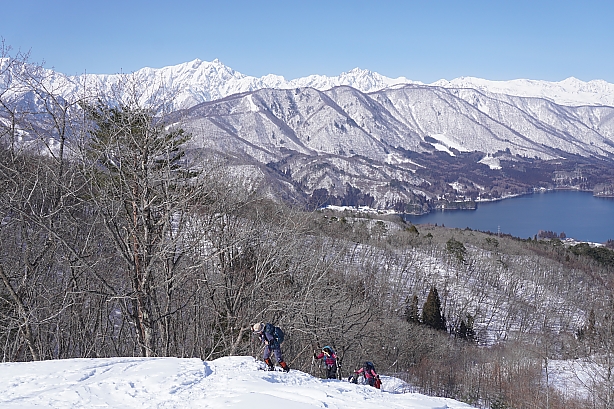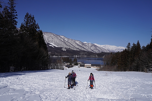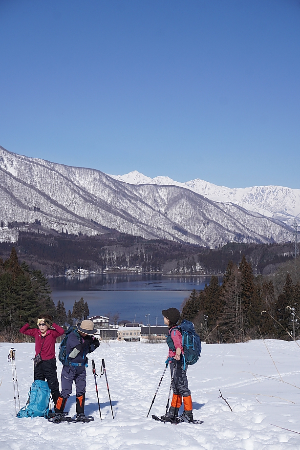 青木湖の畔、旧ヤナバスキー場、此処良いですね。スノーシュー遊びに最高!登りはじめから絶景。