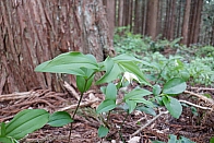 ▲登山口を出発。そして直ぐ道脇を彩る花々(チゴユリ、イカリソウ)