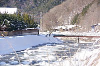 ▲▼道の駅信州平谷を出発、陽ざしが当たり輝く雪、情景が美しく早や前に進めません。