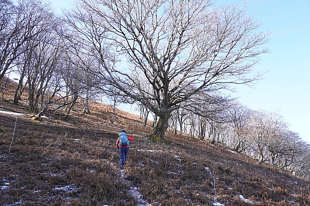 ▲藤原簡易パーキングを出発、木和田尾根へ。当初は雪山初級のプランでしたが、見た目、雪は全く無しです。