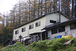 ▲今宵の宿、双子池ヒュッテ。まずは1日目、雨に降られず良かったですね。