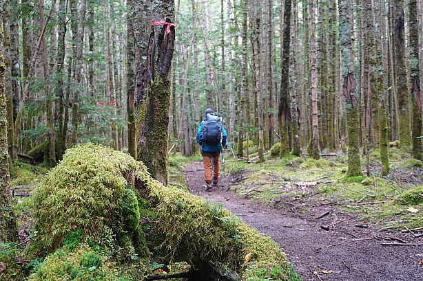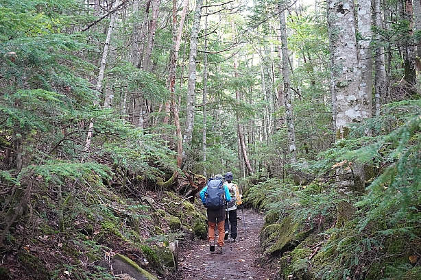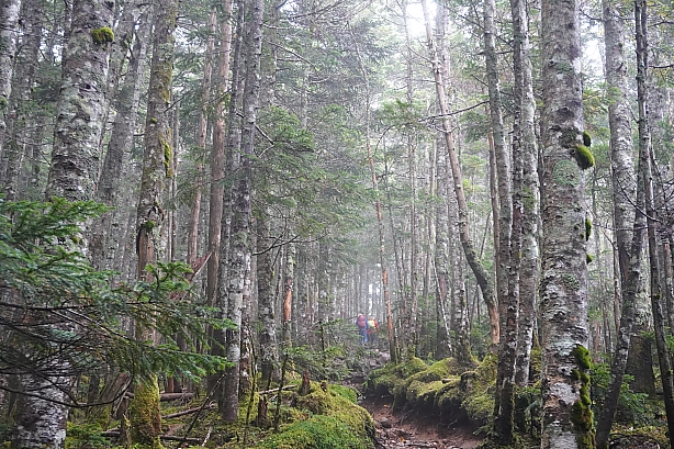 1日目はみどり池を過ぎた辺りから雨。そんな雨ですが、北八ヶ岳の森は雨が似合いますね。苔むす森は潤いを得て