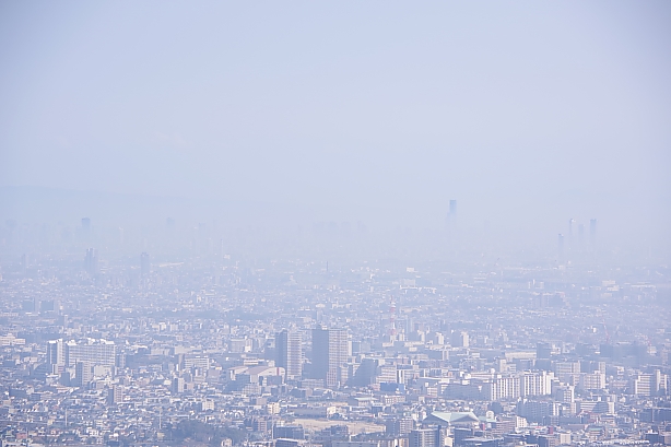 ▲暖かすぎて春霞。アベノハルカスでしょうか?