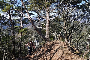 コース。眺望素晴らしい岩峰あり、岩のヤセ尾根あり、歩いてても全く飽きません。
