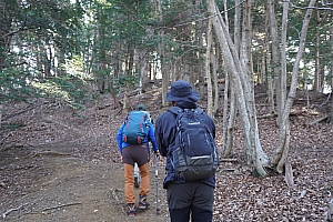 ▲落葉を踏んで、歩きやすい道を下ります。