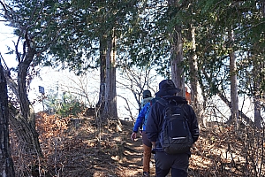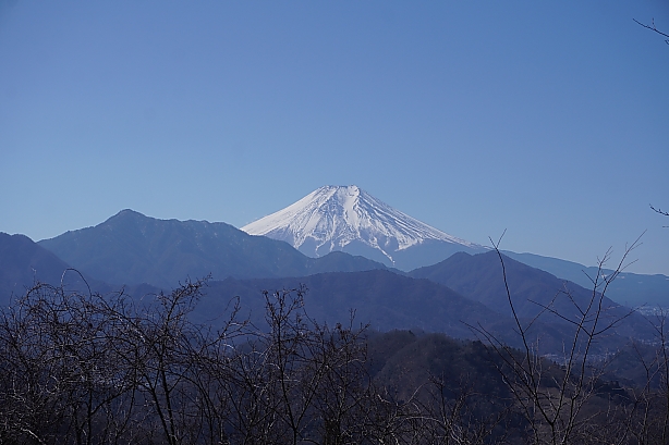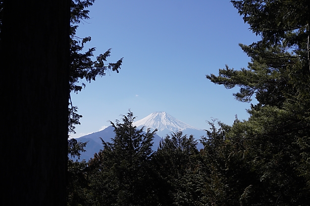 大月市選定の秀麗富嶽十二景、九鬼山。大月市に属する頂上からは木の間から少しですが、都留市側の道中の方が