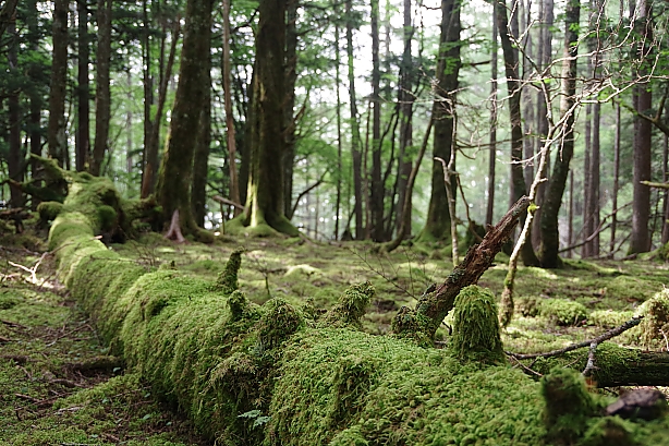 暑さを覚悟しての登山ですが、全山苔むす森と古木の山、意外と涼しい山歩き♪♪