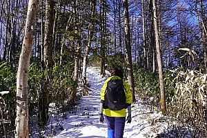 ▲今年は雪が少ないですね。南沢山登山口まで殆ど、雪を踏む事無く車で到着。