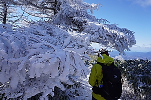 ▲横川山は冬衣装(霧氷)の木々が美しい