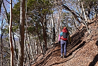 ▲本栖湖畔、パノラマ台登山口を出発。歩きやすい登山道を1時間弱、電波塔が建つ烏帽子岳(1257m)到着