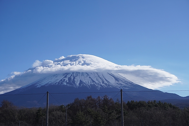 ▲道の駅なるさわでお買い物中、富士山に巨大な笠雲。