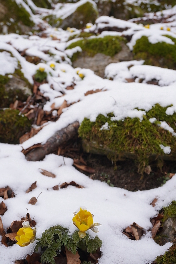 そして雪の中から寒そうに顔を出す福寿草。狙って此れを見に来ることは中々出来ませんのでレアですね。