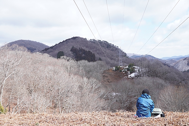 ▲鉄塔休憩ポイント。歩いてきた鍋尻山&地蔵岳