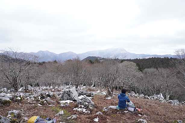 ▲カレンフェルト点在する素敵な平原。此処でランチタイム♪ 正面に御池岳、三国岳、烏帽子岳