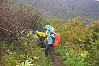 ▲孫三瓶へ向かう途中、雨が降ってきましたので雨具着用