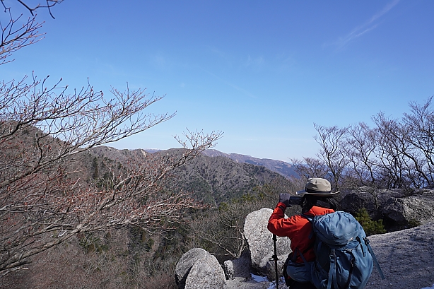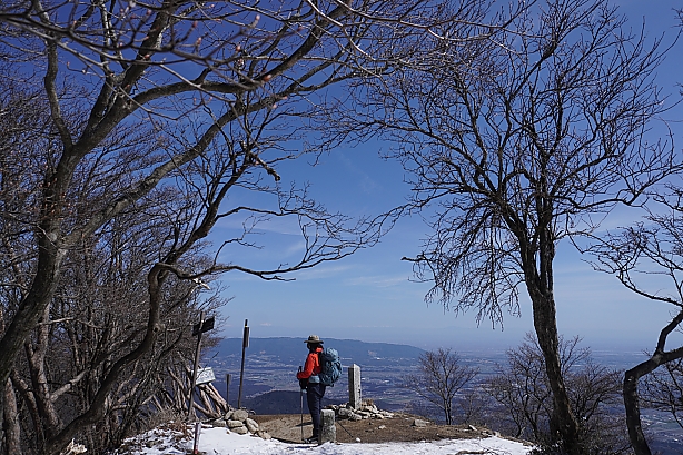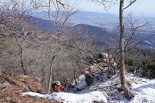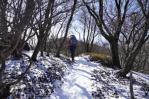 出てきて休憩地などではぽかぽか陽気。雪は釈迦ヶ岳直下だけでツボ足でも全く大丈夫。