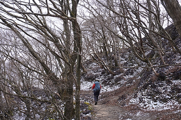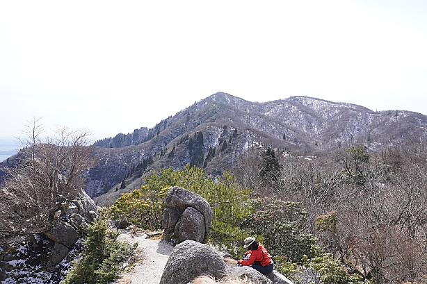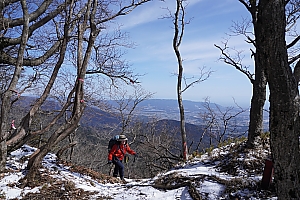 登路の岩ヶ峰尾根では冬本番を感じさせる冷たく強めの風。稜線上が心配しましたが意外と微風に。そして陽ざしも