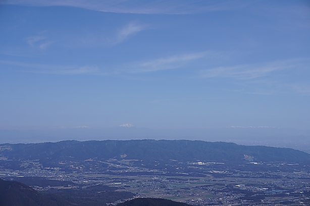 ▲養老山地の上に薄っすらと…乗鞍岳、御嶽、中央アルプス