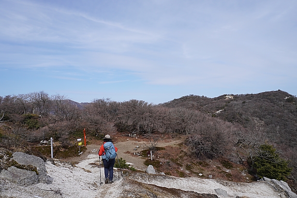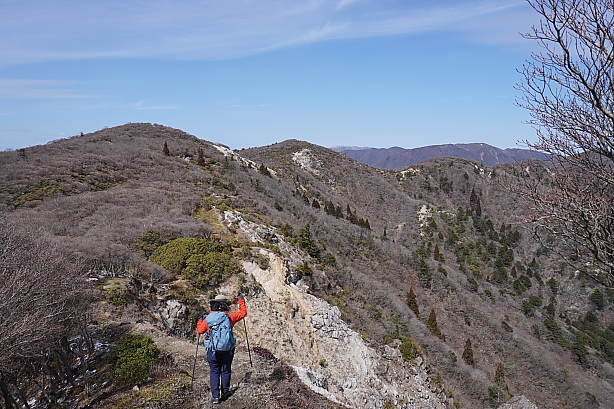 ▲稜線上、雲一つない青空。風は冷たいのですが気持ちいい天気♪