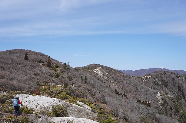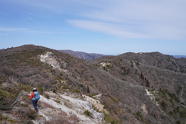 1000m前後の稜線とは思えないアルプス的風景。一見、森林限界を越えた感じにも見えます。